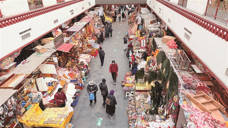 頓珠則在攤位前挑選了一款極具當地特色的門簾?!岸焯鞖饫洌众s上藏歷新年快到了,掛上門簾既能擋風保暖,又能增添節日氛圍?!薄☆D珠說,八廓商城的一站式采購太方便了,吃的、喝的、穿的、用的一應俱全,不用東奔西跑,省了不少時間和精力。