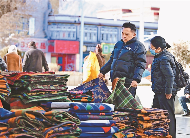 隨著春節、藏歷新年臨近,拉薩街頭年味漸濃,各大市場也熱鬧起來。八廓商城里更是人頭攢動,迎來了一年中最紅火繁忙的時節。市民們穿梭于各個攤位之間,精心挑選著藏裝、切瑪盒、門簾等年貨,為迎接佳節做準備。熙熙攘攘的人流、琳瑯滿目的商品……處處洋溢著喜慶、溫暖的氣氛。