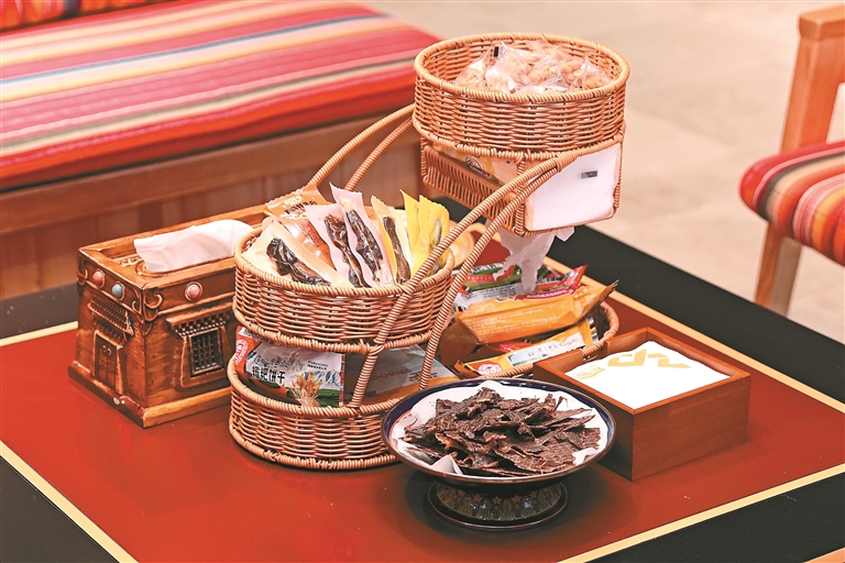 繼續(xù)前行,展館深處的咖啡廳飄出陣陣異香——酥油拿鐵、牦牛奶拿鐵、藏式甜茶、磚茶,這些融合了西藏元素的飲品被大家捧在手里,像是把雪山草原“裝進(jìn)了”咖啡杯。重慶妹子小王抿了一口酥油拿鐵,挑眉笑道:“很醇香,有點咸,這是西藏的味道。”