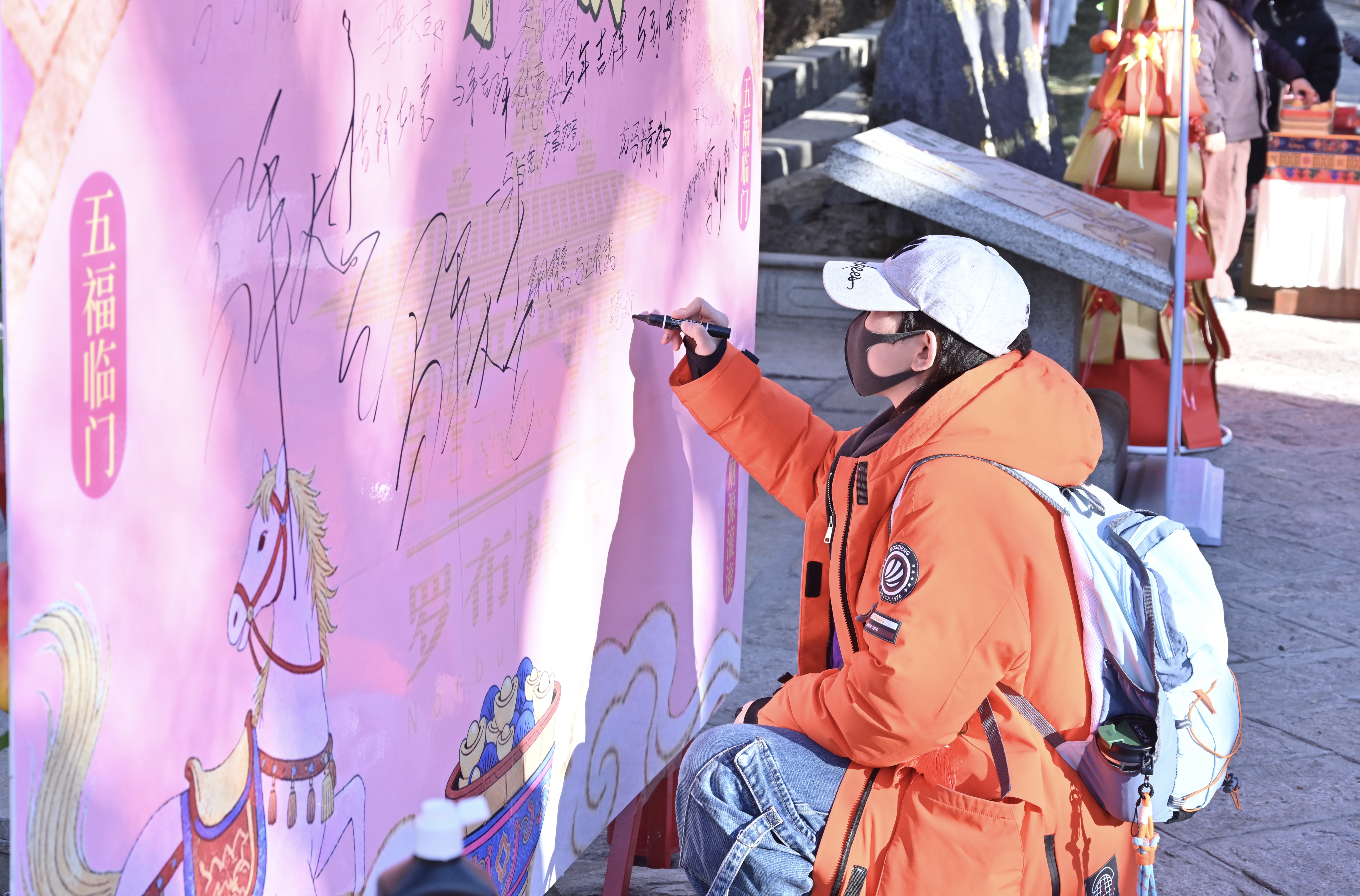 游客在留言板上書寫新年寄語。記者 王敏 攝