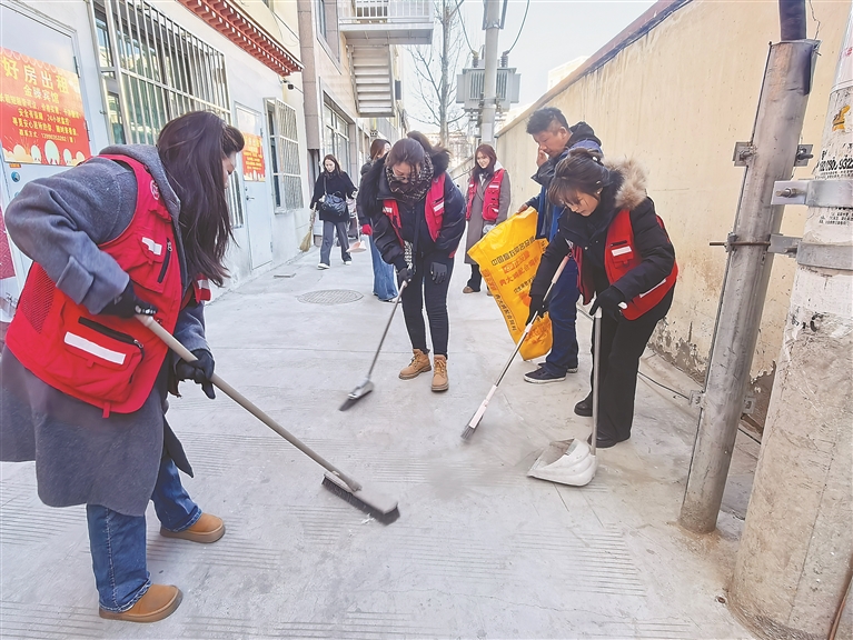 圖為志愿者們在打掃社區(qū)衛(wèi)生。記者 劉琳琳 攝