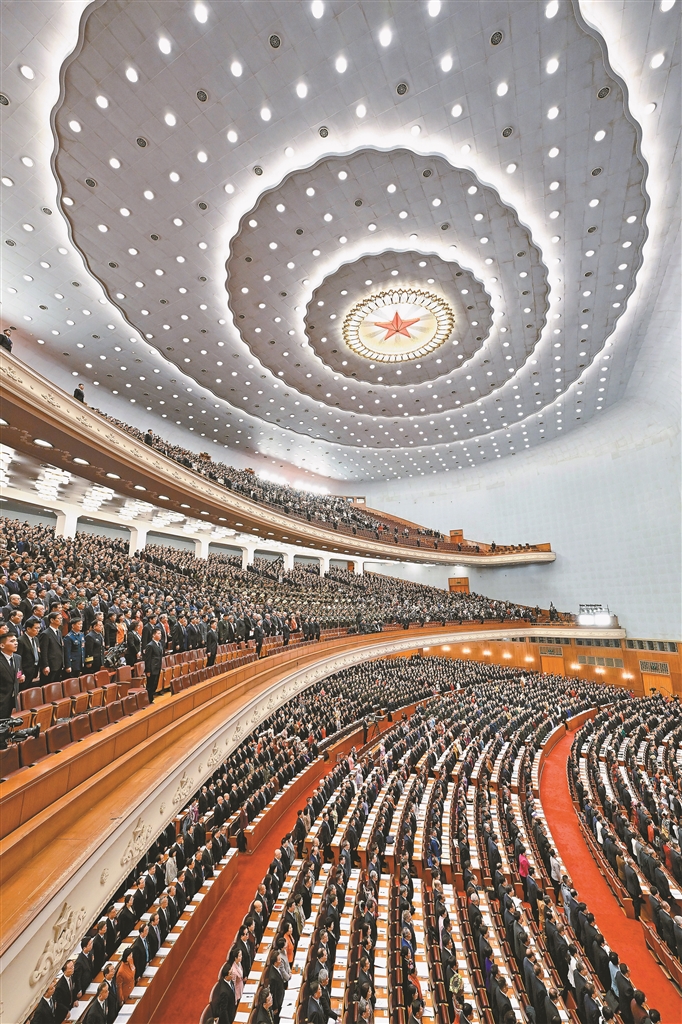 9時,人民大會堂大禮堂內燈光璀璨,雄壯的國歌響起,大會正式開幕。