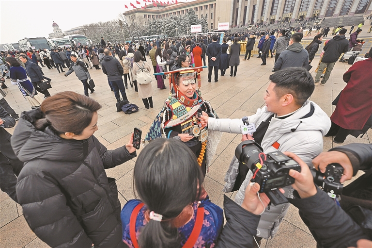 走出人民大會堂后,代表們仍在熱烈討論。