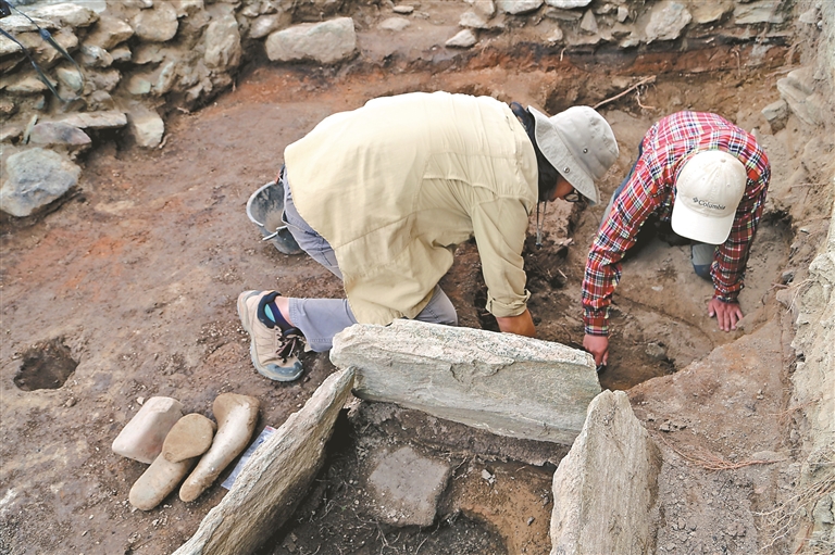 瓊結縣下水鄉幫嘎遺址考古發掘現場(資料圖片)。倫珠澤仁 攝