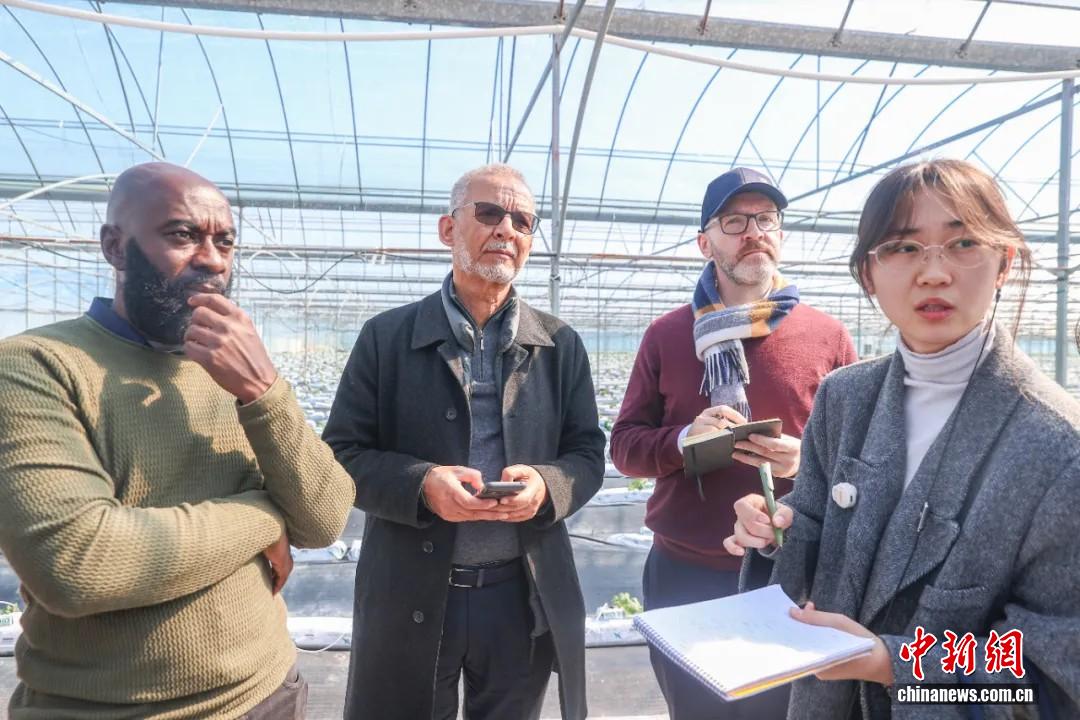 2025年11月21日,穆罕默德·曼蘇里(左二)跟隨“人權(quán)行動(dòng)看中國(guó)·2025”江西行活動(dòng)參訪團(tuán)來(lái)到贛州市于都縣潭頭村的蔬菜大棚基地,了解富硒蔬菜產(chǎn)業(yè)發(fā)展情況。劉力鑫 攝