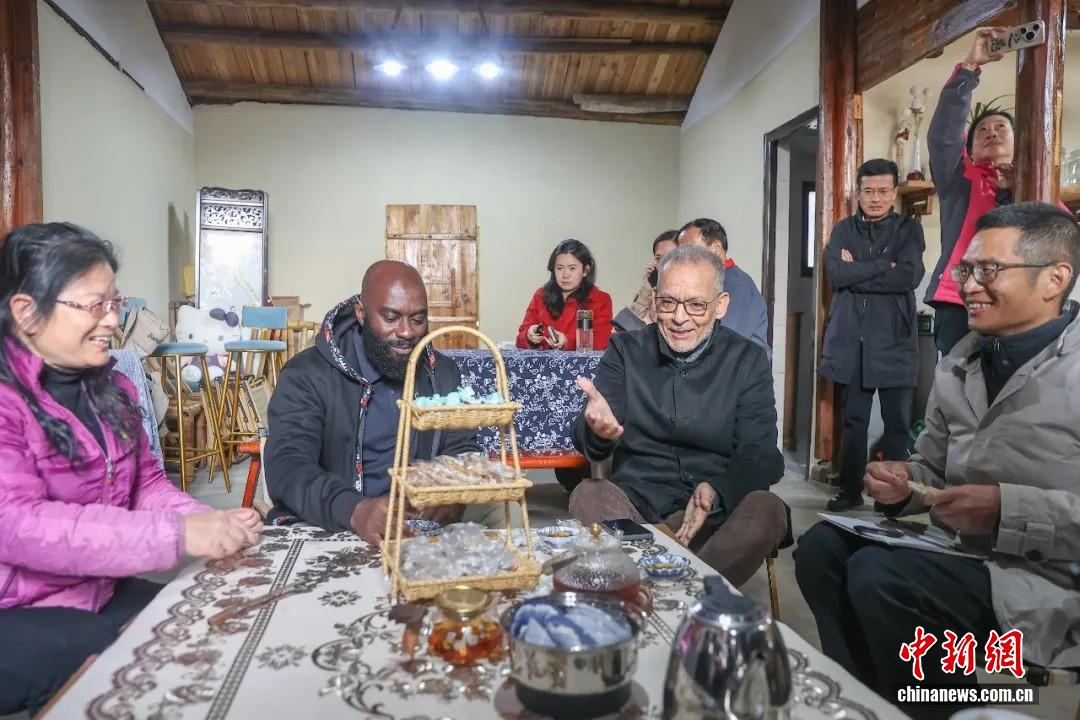 2025年11月17日,穆罕默德·曼蘇里(前排右二)跟隨“人權(quán)行動(dòng)看中國(guó)·2025”江西行活動(dòng)參訪團(tuán)來(lái)到南昌縣塔城鄉(xiāng)湖陂村鄉(xiāng)村振興示范區(qū),在“新村民”劉紅(左一)家中與她面對(duì)面交流。劉力鑫 攝