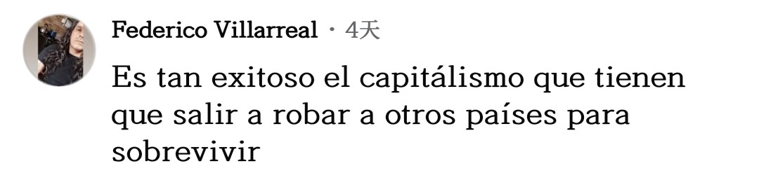 網(wǎng)友費德里科·比利亞雷亞爾不禁感慨道:“資本主義如此成功,以至于他們必須去搶劫其他國家才能生存下去。”