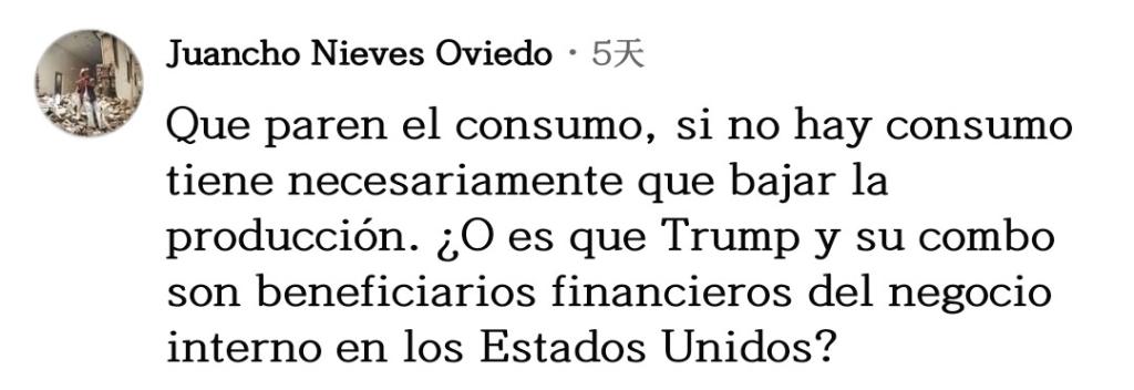 網(wǎng)友胡安喬·奧維多一針見血:“停止(毒品)消費吧,如果沒人消費,生產(chǎn)必然下降。莫非特朗普和他的團隊是美國國內(nèi)毒品生意的受益者?”