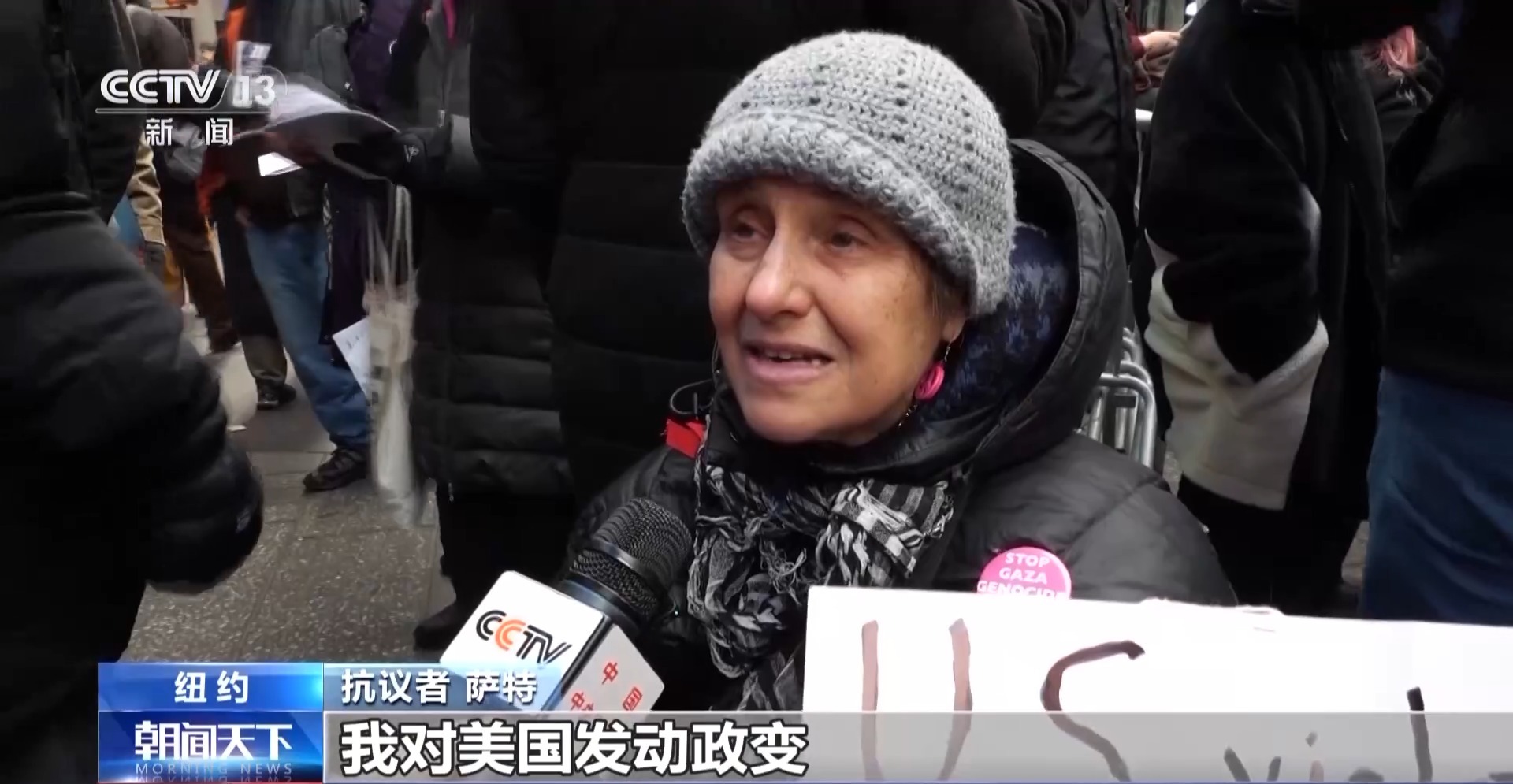 抗議者 薩特:我對美國發動政變,違反國際法的行為感到極度震驚,一開始美國轟炸船只,殺害平民,然后直接派去軍艦,闖入他國,把一位總統帶走,美國沒有任何權利這么做。