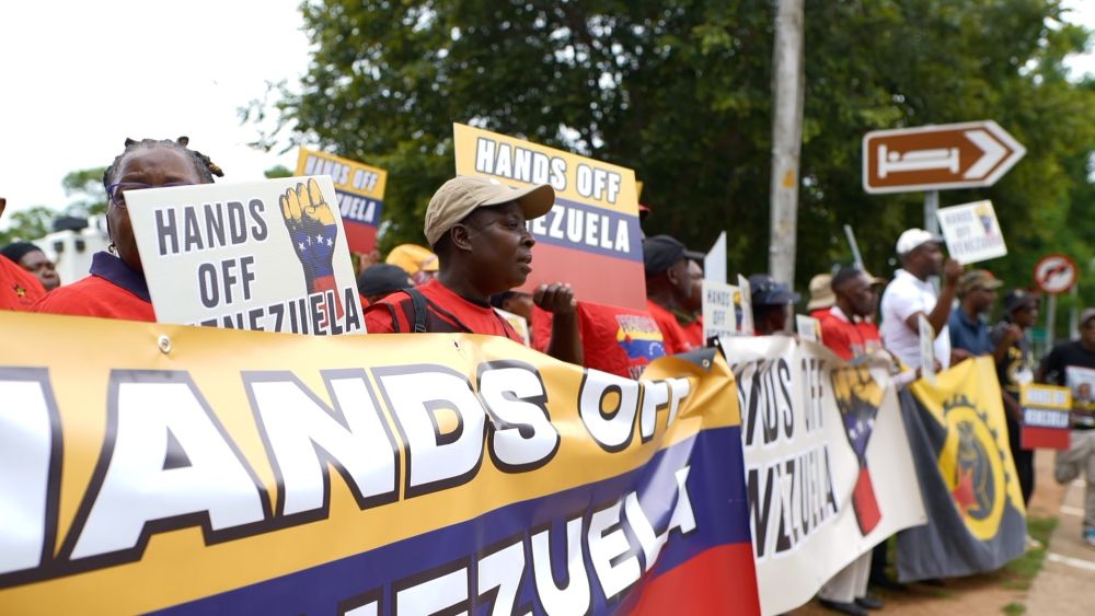 當地時間8日中午,南非民眾在位于行政首都比勒陀利亞的美國駐南非大使館前舉行集會,高喊“停止干涉委內瑞拉”等口號,抗議美國對委內瑞拉實施軍事打擊。