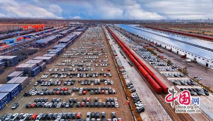 高頻通行,助推樞紐能級躍升。新疆位處西北邊境,雖物產豐富,以往受限于地理位置,難以充分參與國際貿易。但隨著共建“一帶一路”深入推進,中歐班列飛速興起,霍爾果斯鐵路口岸站逐漸成為班列西通道的關鍵節點。目前,該口岸中歐(中亞)班列日均通行量在27列以上,平均每2小時完成一列入境返程中歐班列的換裝工作,其與阿拉山口口岸站共同貢獻了全國五成以上的中歐班列通行量。隨著班列開行量越來越大,不僅越來越多的日用百貨、機電設備、農副產品等“中國制造”選擇從新疆鐵路口岸走向中亞、歐洲市場,也吸引了汽車組裝、電子產品加工等產業在口岸周邊聚集,推動“通道經濟”向“口岸經濟”“產業經濟” 轉型,讓新疆正成為輻射亞歐的國際物流與貿易樞紐。