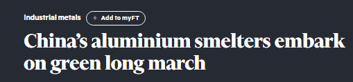 英國《金融時報》8日發表文章稱,中國的鋁行業已經踏上了一條綠色發展的征程,將數百萬噸的鋁生產從其70年來的北方煤炭產區大本營,轉移至擁有豐富可再生能源的南部和西部地區。
