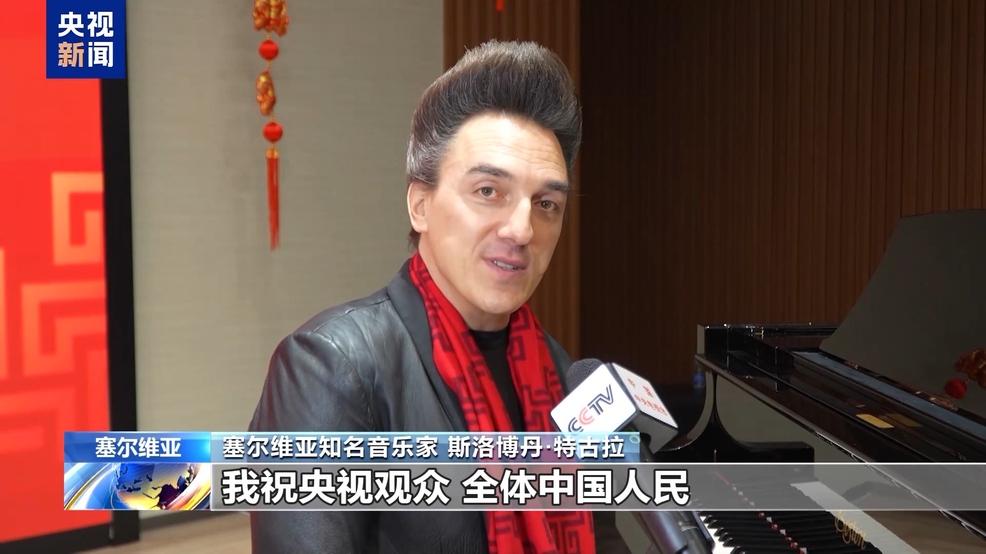 塞爾維亞知名音樂家 斯洛博丹·特古拉:我祝央視觀眾、全體中國人民及其親朋好友馬年萬事如意,新的一年事業(yè)有成,愛情美滿,財源廣進,身體健康,幸福快樂。新春快樂,馬上幸福。