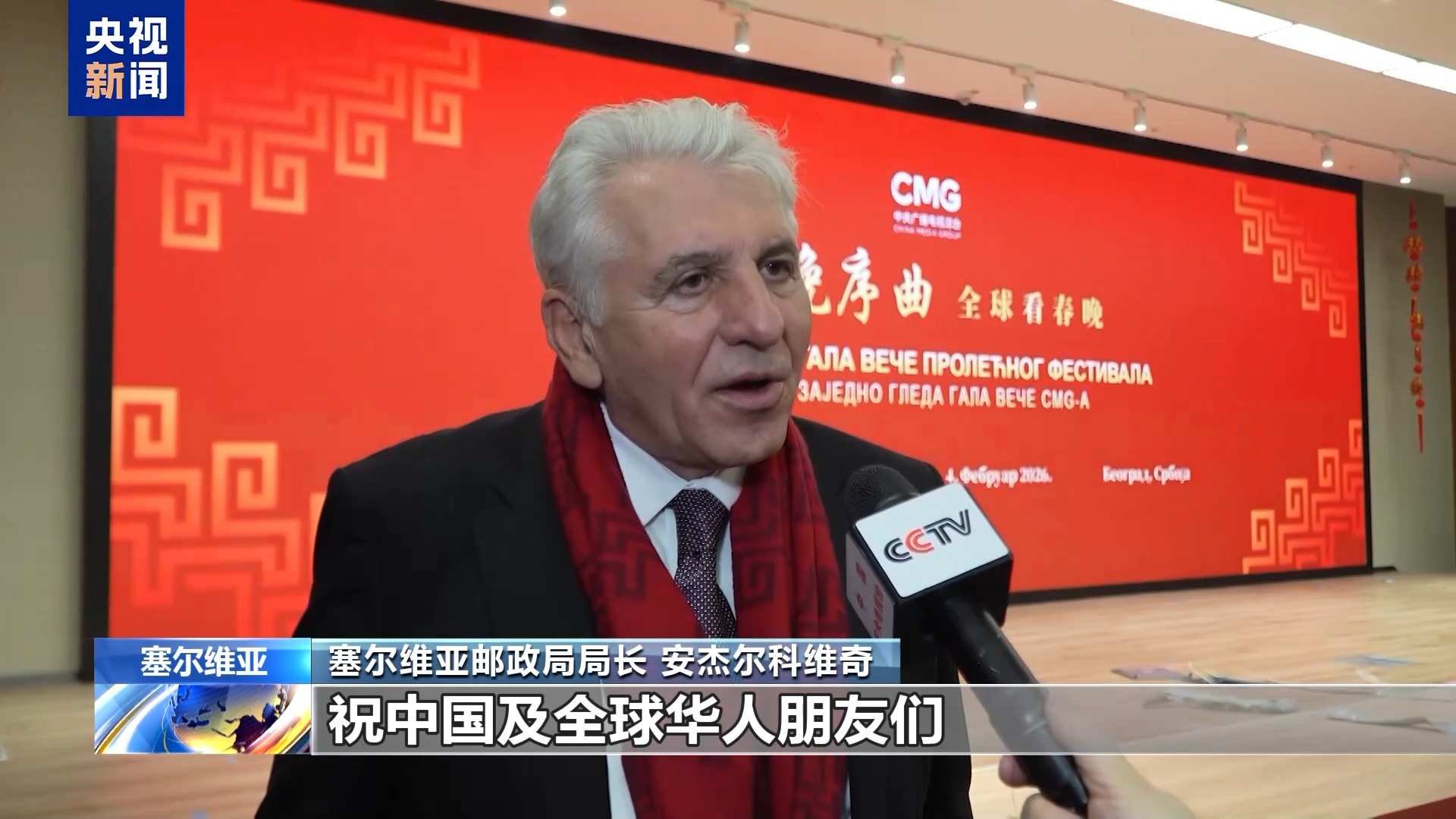 塞爾維亞郵政局局長 安杰爾科維奇:祝中國及全球華人朋友們新春快樂,萬事如意。