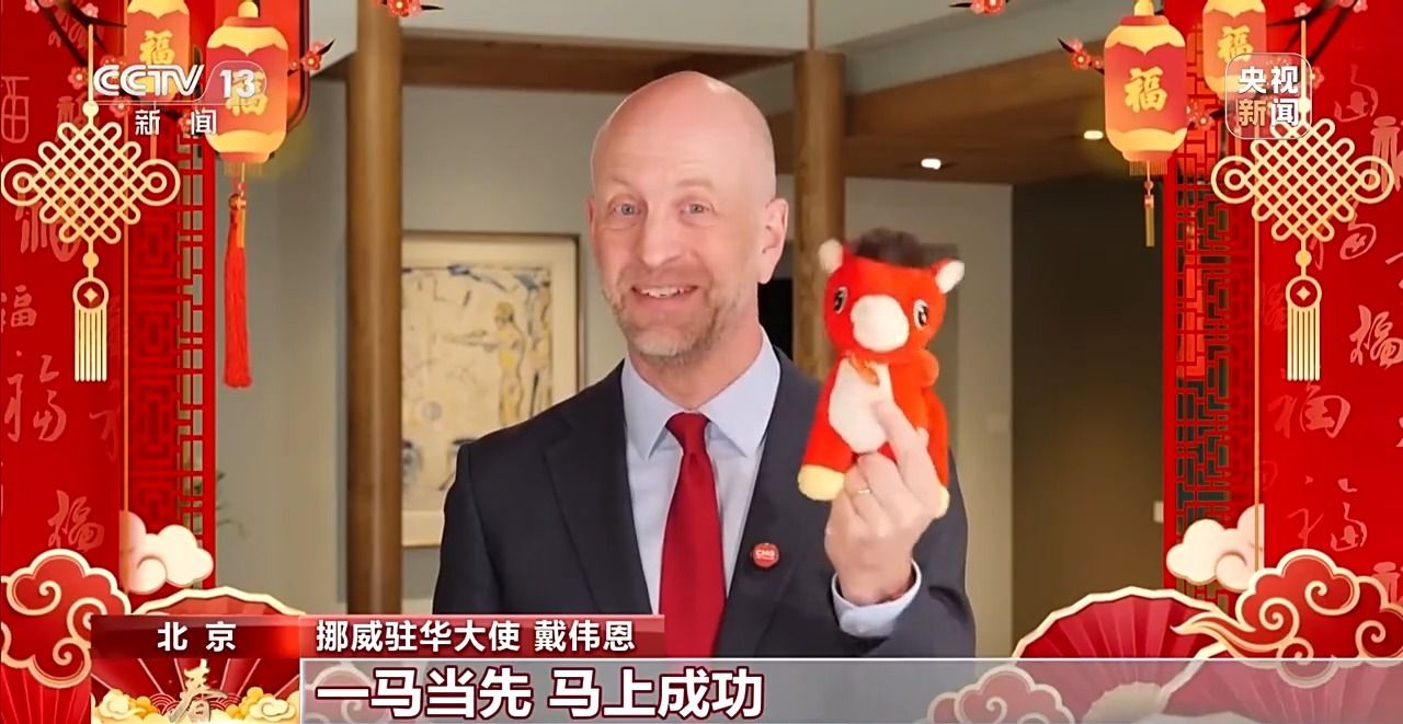 作為最早同新中國建交的國家之一,挪威與中國在綠色、海洋、文化等領域合作密切。如今,中國已成為挪威海產全球第三大出口市場,也是出口額增長最大的國家。就在去年的進博會上,鮮活的挪威面包蟹與棕奶酪正式叩開中國市場大門,越來越多的挪威味道擺上中國百姓餐桌。挪威駐華大使戴偉恩,今年第二次在中國過春節。在他看來,與家人和朋友團聚、享用美食,是節日中最溫暖的部分。戴偉恩表示,剛剛過去的蛇年,中挪兩國關系碩果累累、穩步向前,期待在馬年與中國開展更密切合作,并送上最應景的祝?!榜R上成功”。
