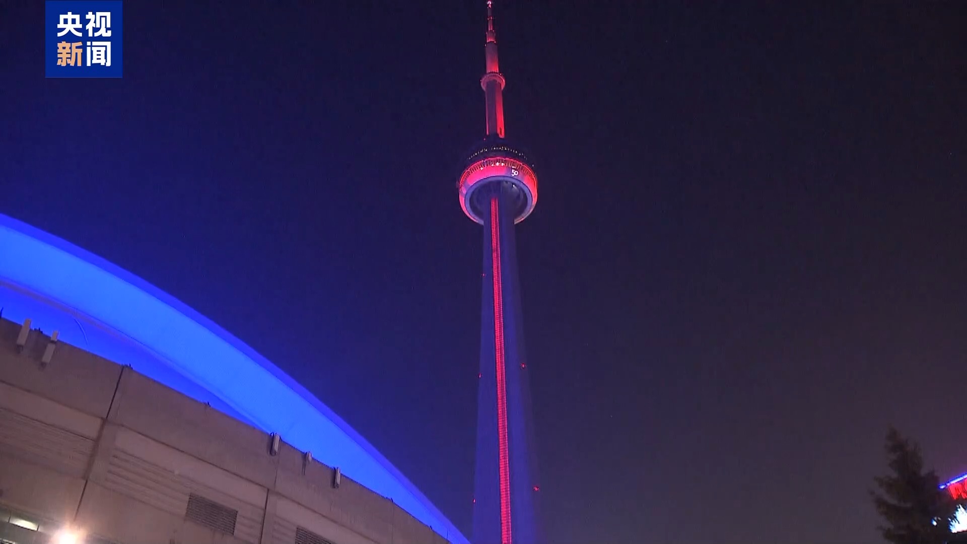 當地時間17日(農歷大年初一),加拿大最大城市多倫多的地標建筑國家電視塔點亮紅色燈光,迎接農歷馬年春節的到來。