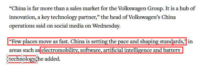 大眾汽車集團負責人表示,中國對大眾汽車集團而言遠不止是一個銷售市場。它是一個創新中心,一個重要的技術合作伙伴。“很少有地方在電動汽車、軟件、人工智能和電池技術等領域發展如此迅速——中國正在引領潮流并塑造標準。”
