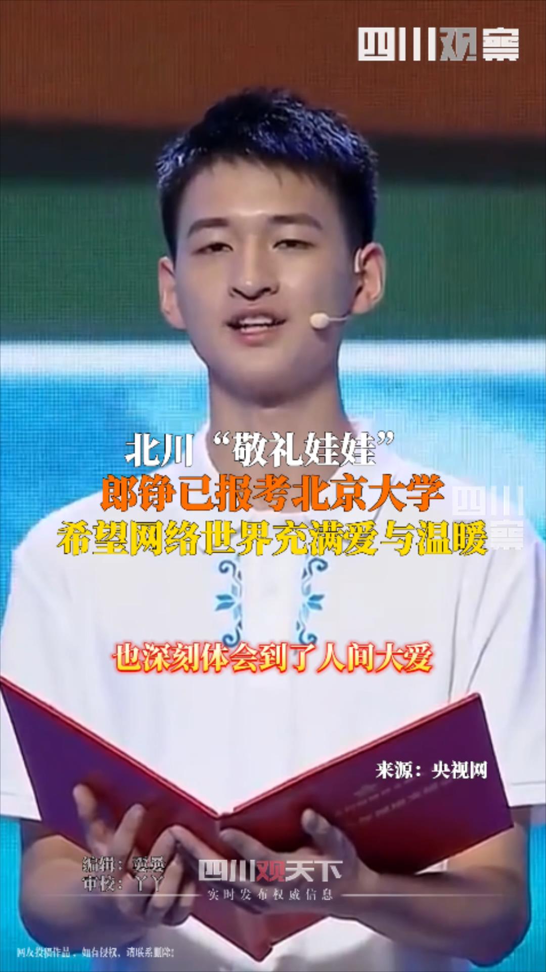 7月18日,2023中國網(wǎng)絡(luò)文明大會在福建廈門舉行,來自四川北川縣的“敬禮娃娃”郎錚,同其他青少年代表一起在會上宣讀了青少年網(wǎng)絡(luò)文明公約。郎錚說將始終心懷感恩報效祖國,希望網(wǎng)絡(luò)世界和現(xiàn)實世界一樣充滿愛和溫暖!
