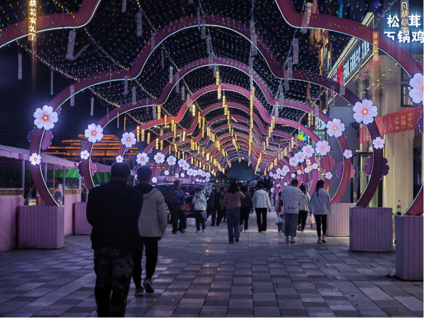 人們漫步在公園夜市