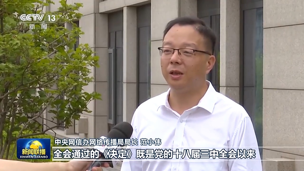 中央網信辦網絡傳播局局長 范小偉:全會通過的《決定》,既是黨的十八屆三中全會以來全面深化改革的實踐續篇,也是新時代新征程推進中國式現代化的時代新篇。我們將深入學習貫徹全會精神,進一步增強堅定擁護“兩個確立”、堅決做到“兩個維護”的政治自覺,適應信息技術發展新形勢,不斷健全網絡綜合治理體系,進一步加強網絡文明建設,更好服務黨和國家工作大局。