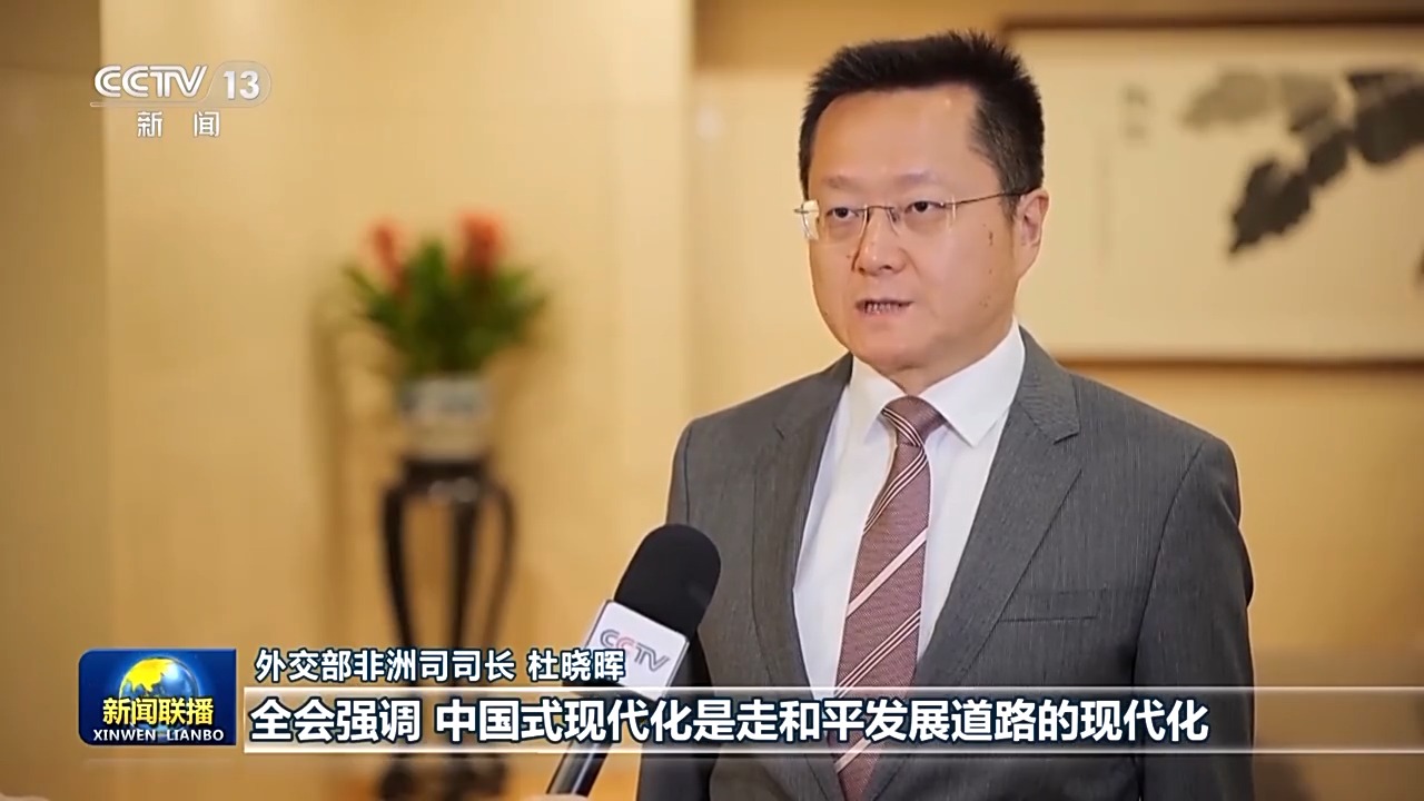外交部非洲司司長 杜曉暉:全會強調,中國式現代化是走和平發展道路的現代化,開放是中國式現代化的鮮明標識。在百年變局加速演進、世界進入新的動蕩變革期的大背景下,三中全會給世界注入和平力量、穩定力量、進步力量、發展力量。我們將以習近平外交思想為指引,堅定奉行獨立自主的和平外交政策,推動構建人類命運共同體,為以中國式現代化全面推進強國建設、民族復興偉業營造更有利國際環境、提供更堅實戰略支撐。