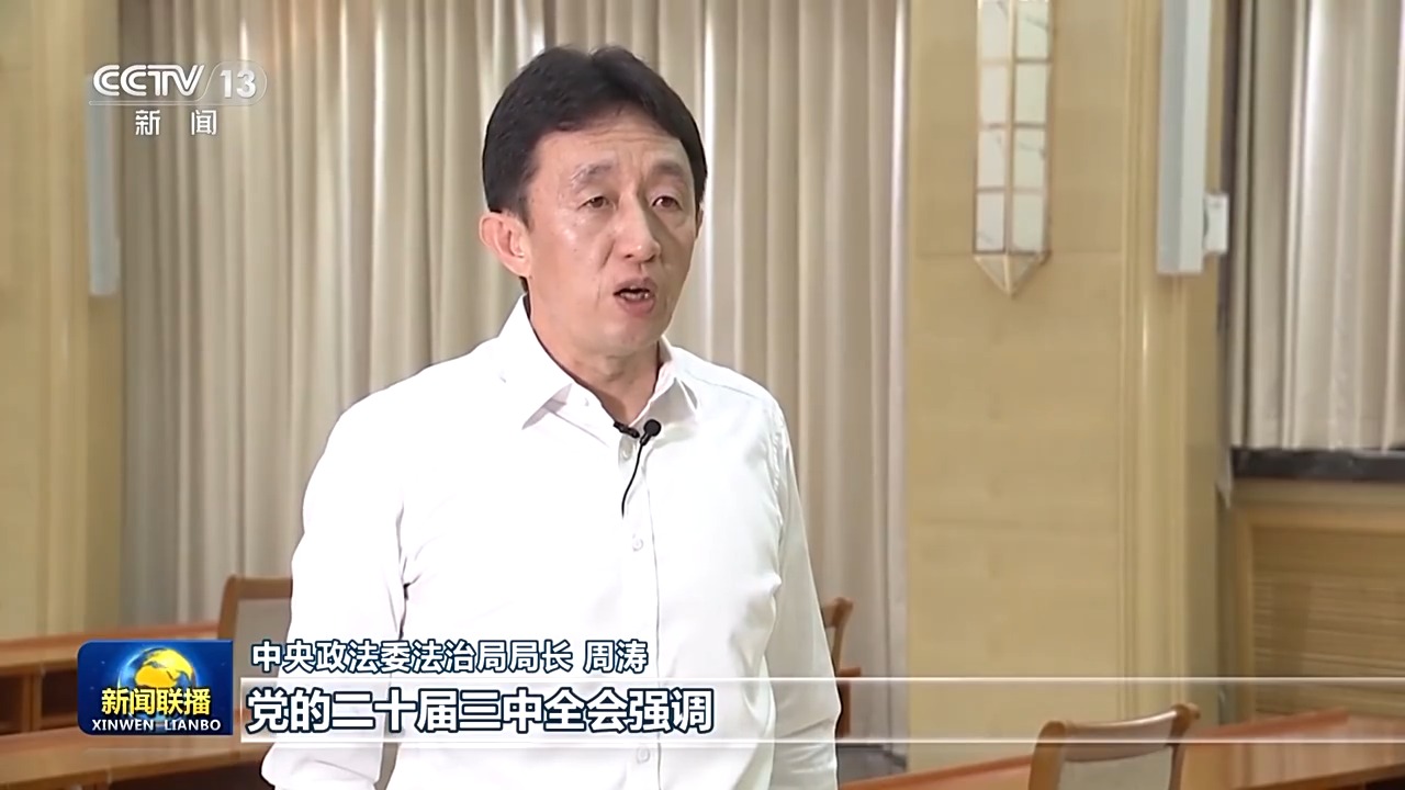 中央政法委法治局局長 周濤:黨的二十屆三中全會強調,法治是中國式現代化的重要保障,進一步全面深化政法改革,要協同推進立法、執法、司法、守法各環節改革,健全法律面前人人平等保障機制。我們將圍繞《決定》作出的改革部署,科學制定實施方案,全面貫徹落實習近平法治思想,更加注重改革和立法同步,更加注重系統集成、協同高效。