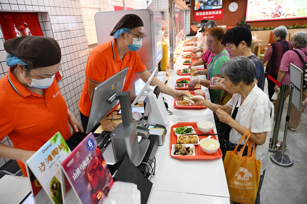 老人正在廣州桐樂社區飯堂買單(7月24日攝)。新華社記者 李賀 攝
