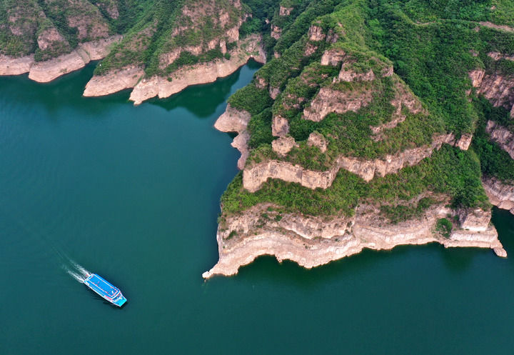在河南省濟源市拍攝的黃河三峽景色(2024年5月28日攝,無人機照片)。新華社記者 李安 攝