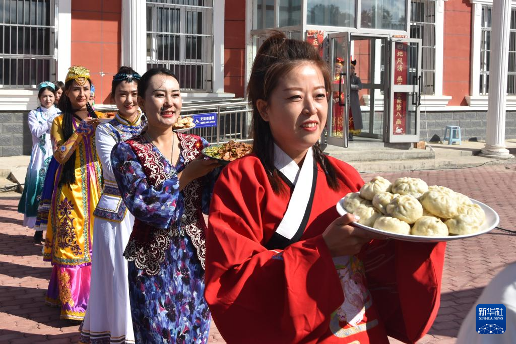 開闊的社區大院內,數十名各族群眾圍坐長桌旁,一邊品嘗各色美食,一邊欣賞居民的精彩表演,歡聲笑語不時傳出。這是新疆塔城市新城街道哈爾墩社區舉行的“鄰里節百家宴”,各族群眾展示民族歌曲,跳起歡快的舞蹈。