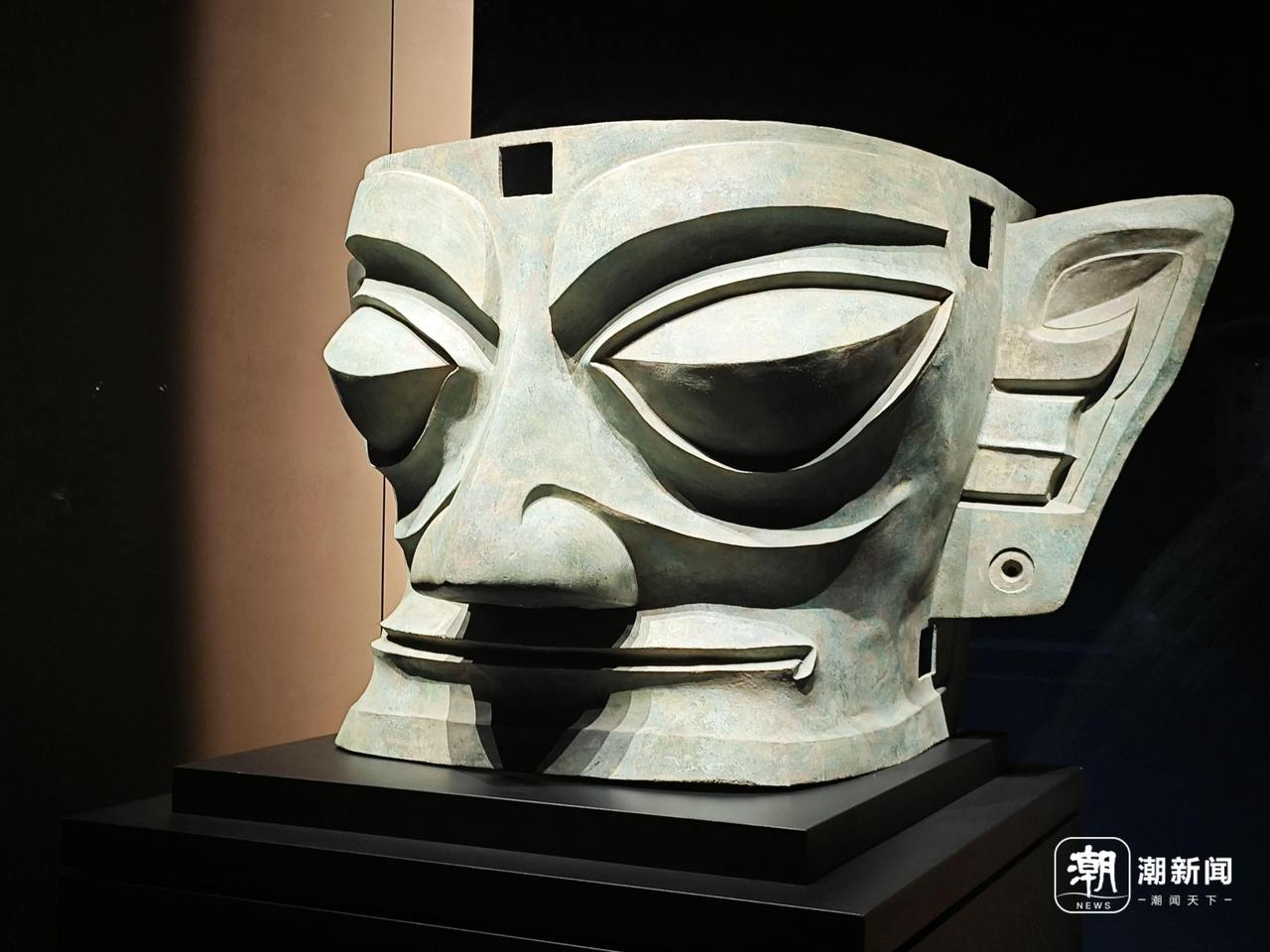 三星堆博物館內的青銅大面具。記者 張迪 攝