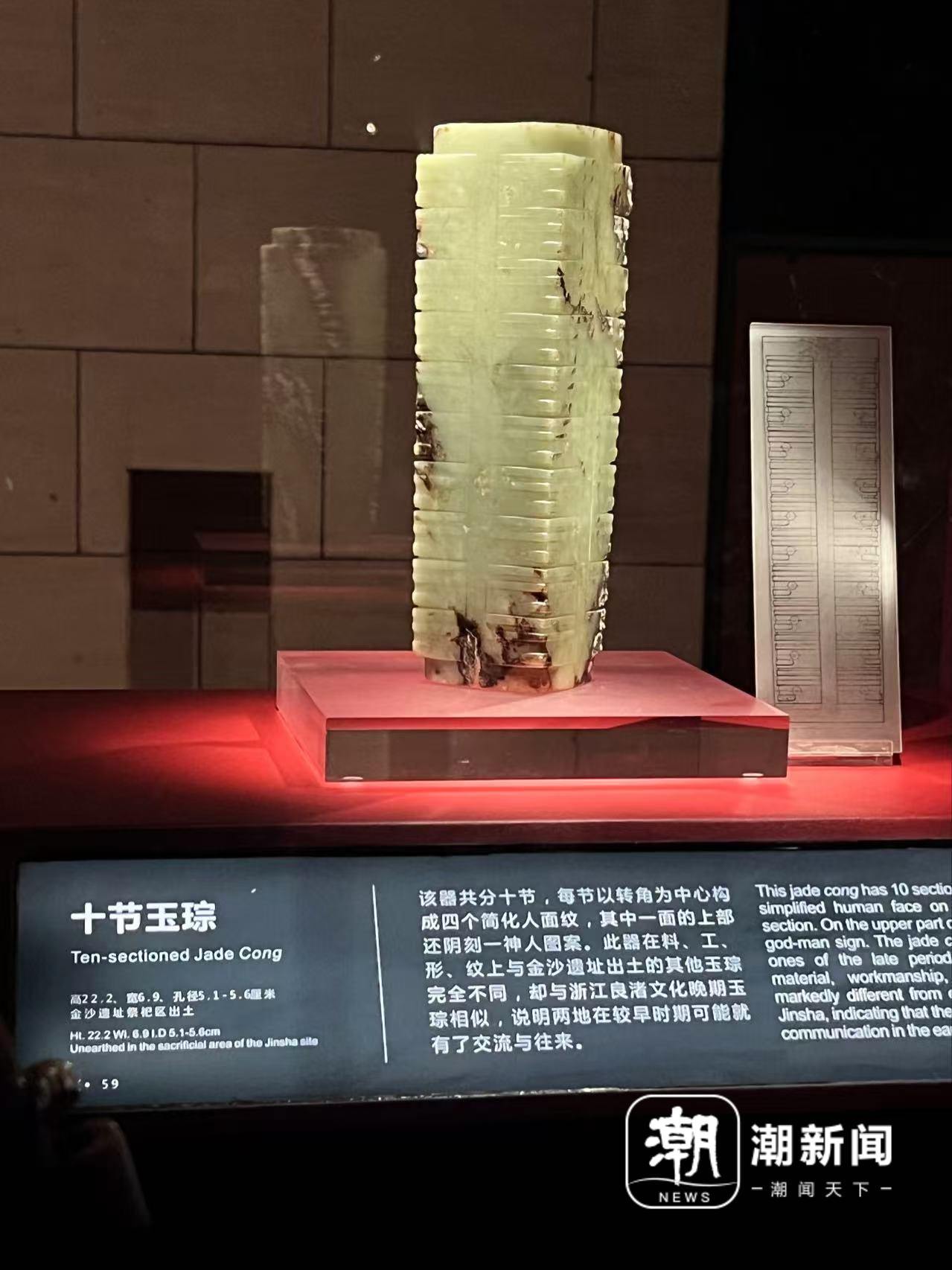成都金沙遺址博物館館藏十節玉琮,與浙江良渚文化晚期玉琮相似。記者 董潔 攝