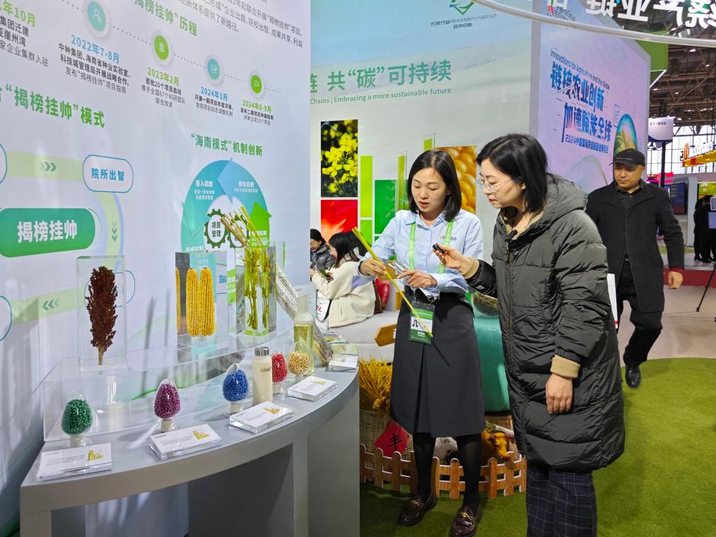 第二屆中國國際供應鏈促進博覽會先正達展臺上,工作人員介紹“揭榜掛帥”項目科研成果。新華社記者張曉潔 攝