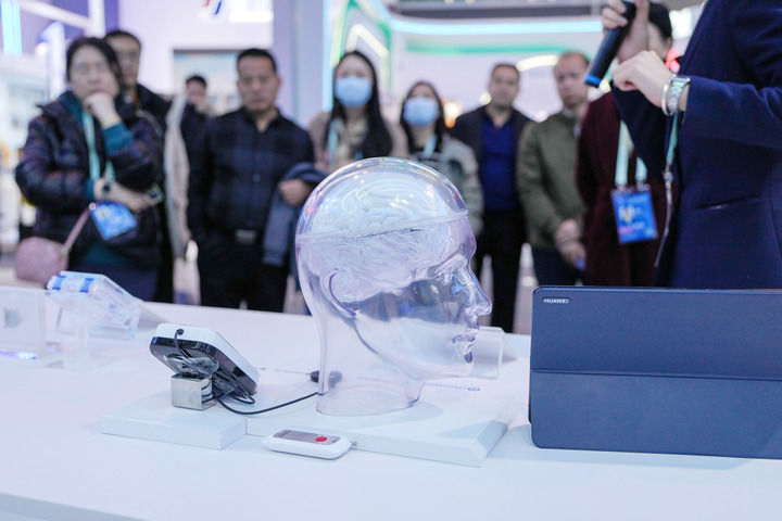 “這是中國自主研發(fā)的半侵入式腦機接口‘北腦一號’,它已完成3例人體試驗……”開幕式所在的暢春廳外,外國人圍著一個透明的腦部模型,豎起拇指。