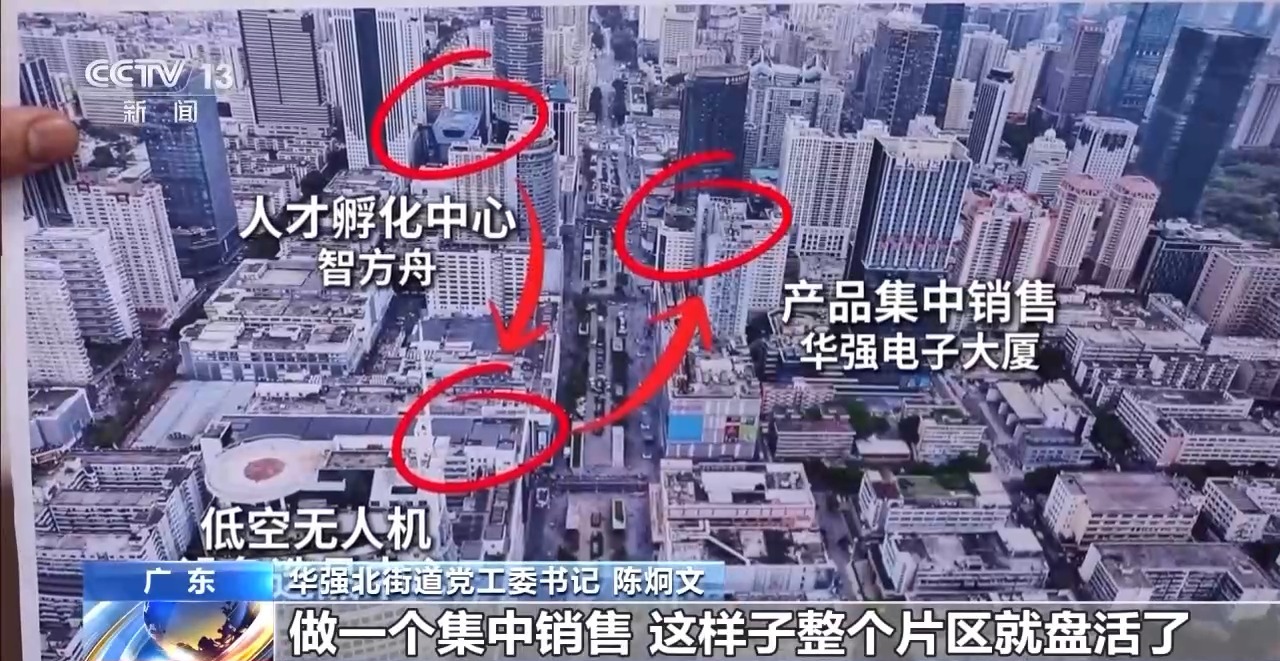 華強北街道黨工委書記 陳炯文:這里有一個人才孵化中心,小樣生產完以后會到這個選品中心,來做一個集成推廣展示,最后的產品會在華強電子大廈做一個集中銷售,這樣子整個片區就盤活了