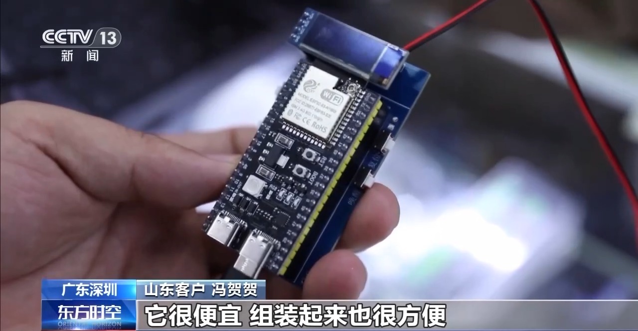 華強北商戶 陳玉偉:主要訂制消費類電子產品,還有一些工控類。這種就是大家玩的DIY的,AI語音模塊。