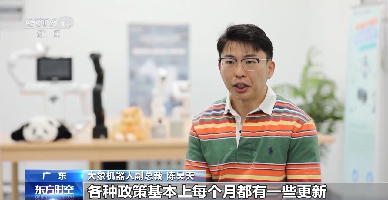 大象機器人副總裁 陳昊天:各種政策基本上每個月都有一些更新,在機器人的訓練、數據的采集,去幫助我們成長。