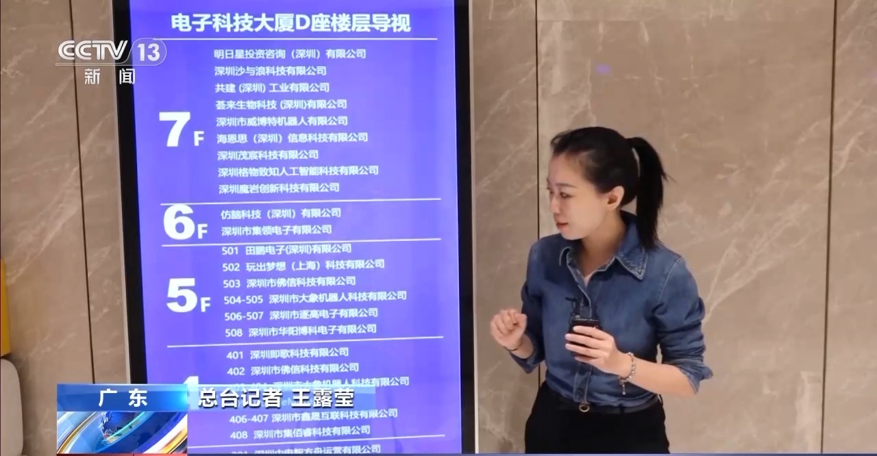 總臺記者 王露瑩:這棟大樓里的3至7層都是一些高科技類的企業,人工智能類的,還有機器人類的,大概是有20多家。