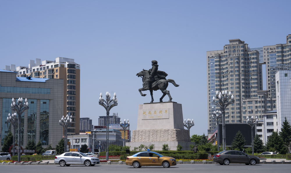 驅車駛入黑龍江省尚志市,一眼便看見環島中心屹然挺立的高大銅像:趙尚志將軍身騎戰馬,戎裝飛揚,他望向遠方,好似凝視這一方和平安寧。