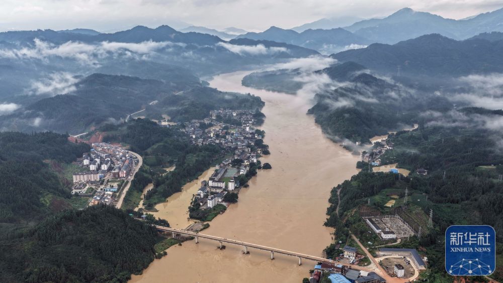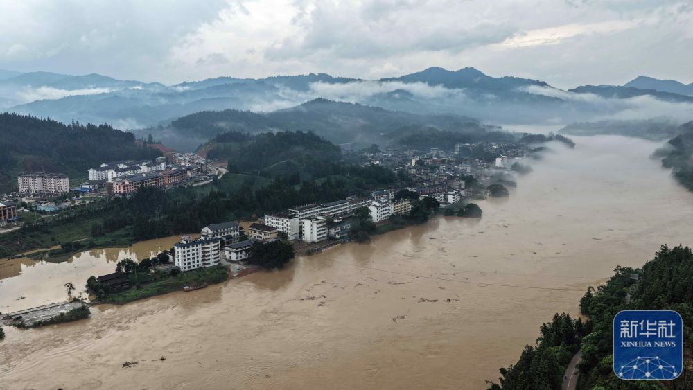 ↑這是被淹的三江侗族自治縣良口鄉良口村(無人機照片,6月25日攝)。