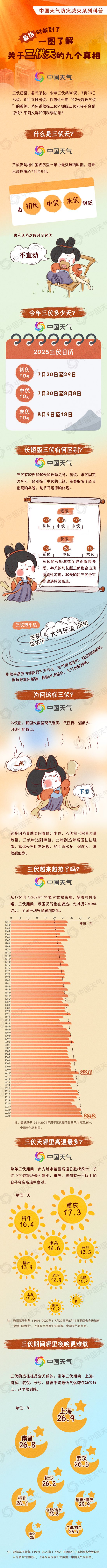 今天(7月20日),我國正式入伏,意味著一年中最熱的時候來了。今年為30天短版三伏,打破了近十年“40天超長三伏”的慣例。為何說熱在三伏?短板三伏天會不會更涼快?不同人群如何科學防暑?中國天氣網推出防災減災系列科普,一圖了解關于三伏天的9個真相。