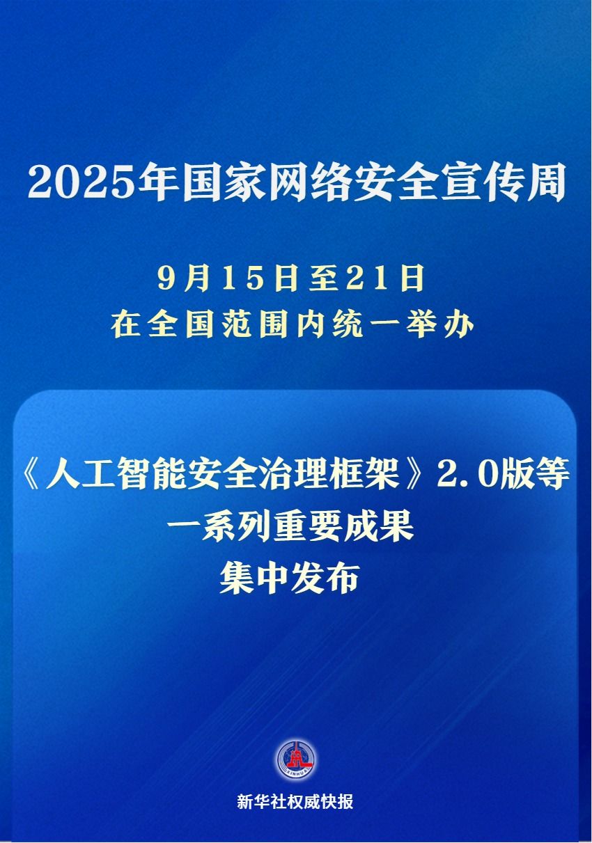 2025年國家網絡安全宣傳周9月15日至21日在全國范圍內統一舉辦,開幕式等重要活動在云南昆明舉行。在15日舉行的網絡安全技術高峰論壇主論壇上,《人工智能安全治理框架》2.0版、《政務大模型應用安全規范》、2025年人工智能技術賦能網絡安全應用測試活動結果等重要成果集中發布。