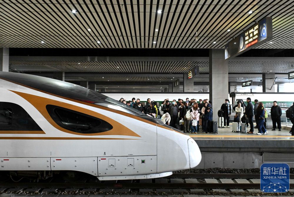 ↑ 11月16日,旅客在位于天津市濱海新區(qū)的塘沽站準(zhǔn)備登車。新華社發(fā)(杜鵬輝攝)