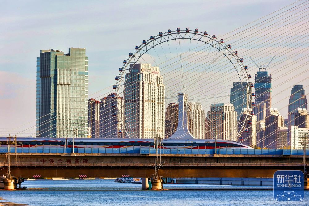 ↑ 11月16日,動(dòng)車組列車行駛在天津市境內(nèi)。新華社發(fā)(杜鵬輝攝)