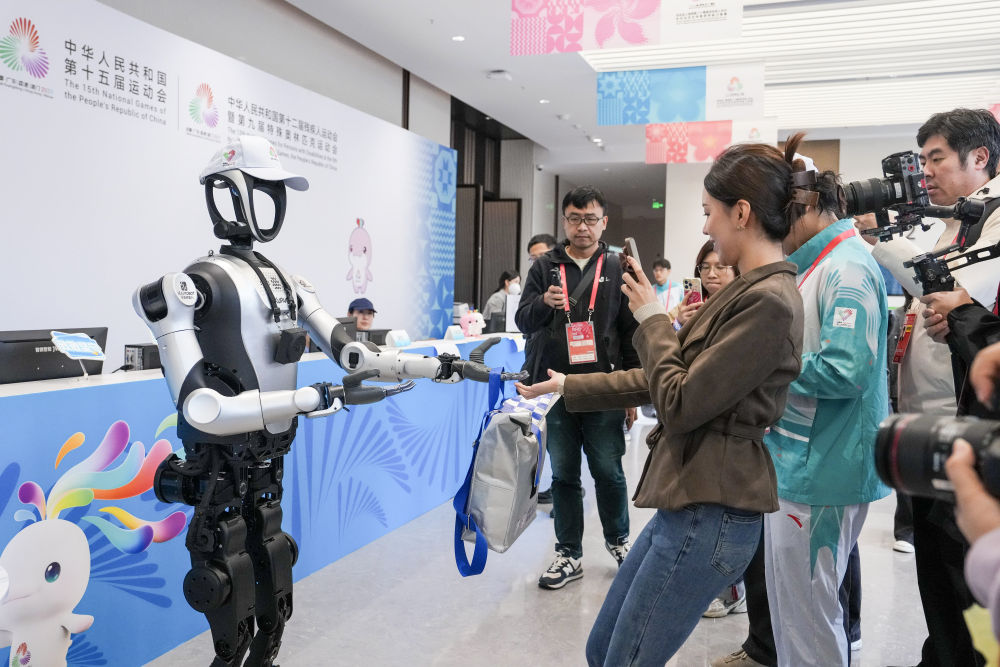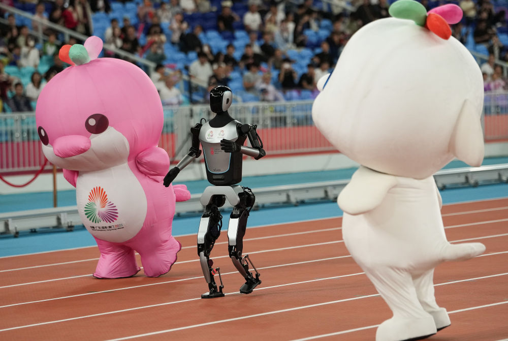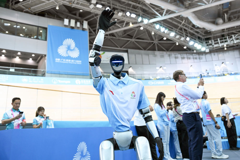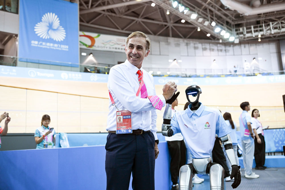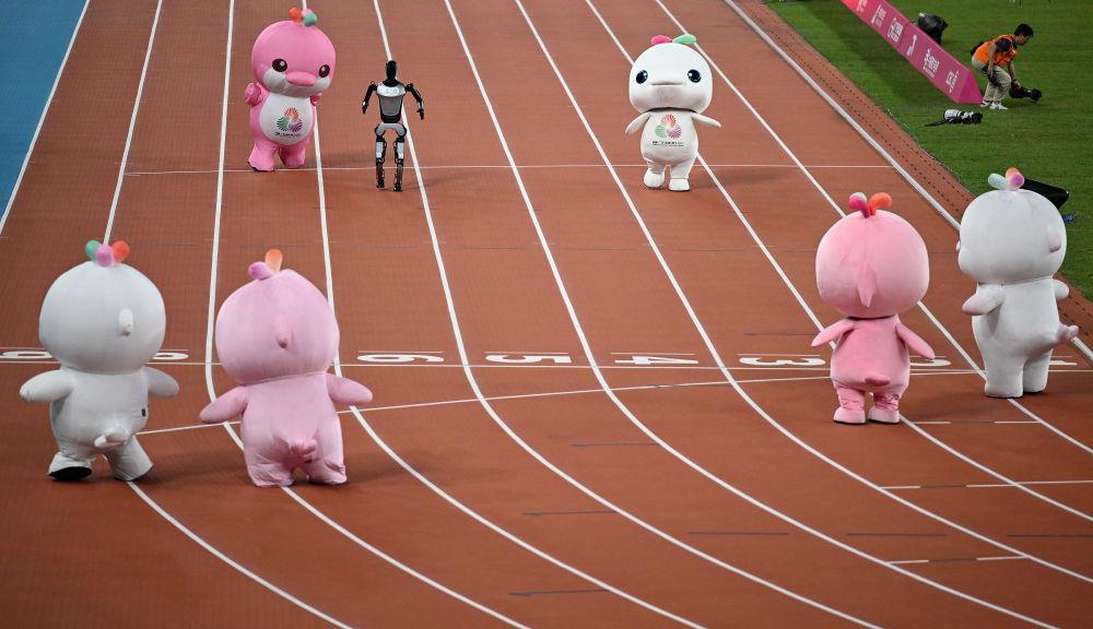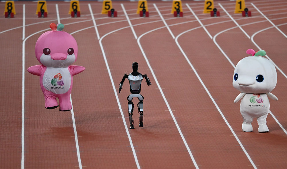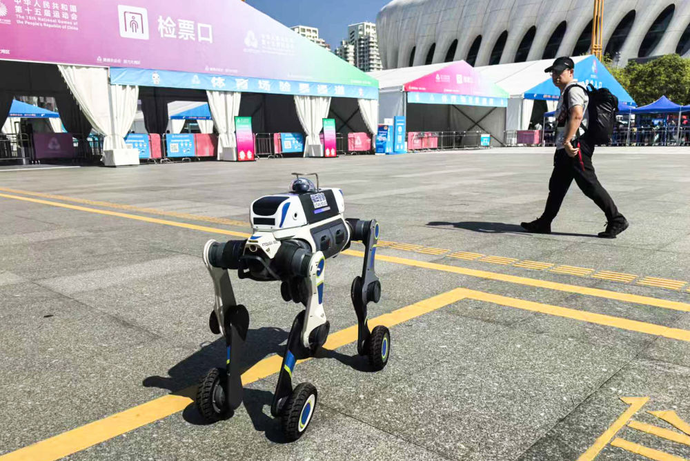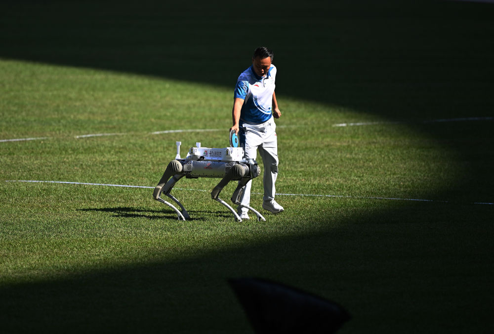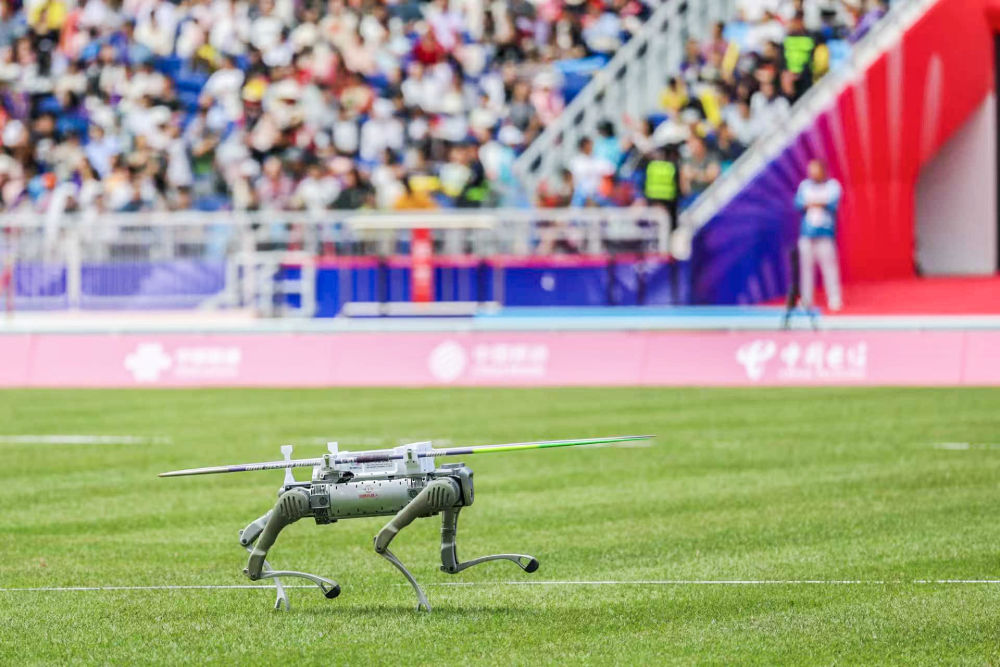 機器狗邁著靈動的步伐奔向鐵餅落點