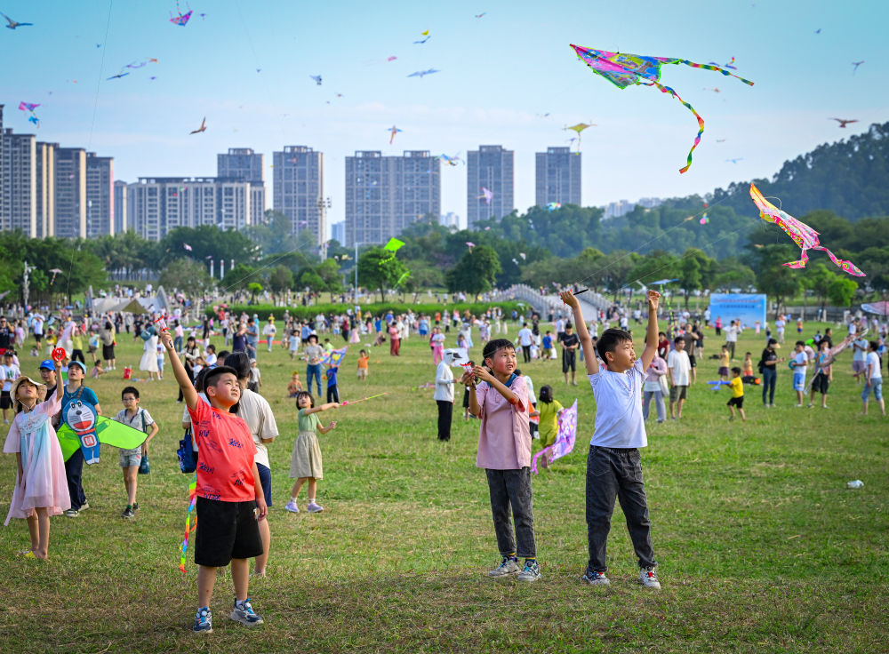 2024年10月13日,市民在廣東陽江南國風箏場放飛風箏。陽江市委宣傳部供圖
