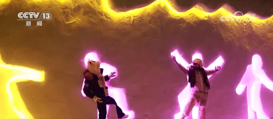 夜幕下的漠河市北極村被燈光點亮,惟妙惟肖的雪雕有了不一樣的顏色。在小廣場上,天南地北的游客聚在一起攜手起舞,并用鏡頭記錄下浪漫的煙火。為滿足滑雪愛好者的需求,當(dāng)?shù)匮﹫鼋衲晔状伍_放夜滑,并新增了雪道。