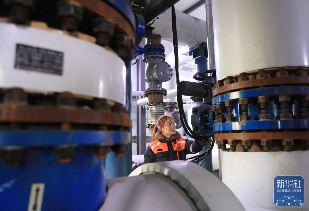 ↑ 12月10日,熱力公司員工在河南省焦作市溫縣城區集中供暖首站對供熱設備進行檢查。新華社發(黃福興攝)