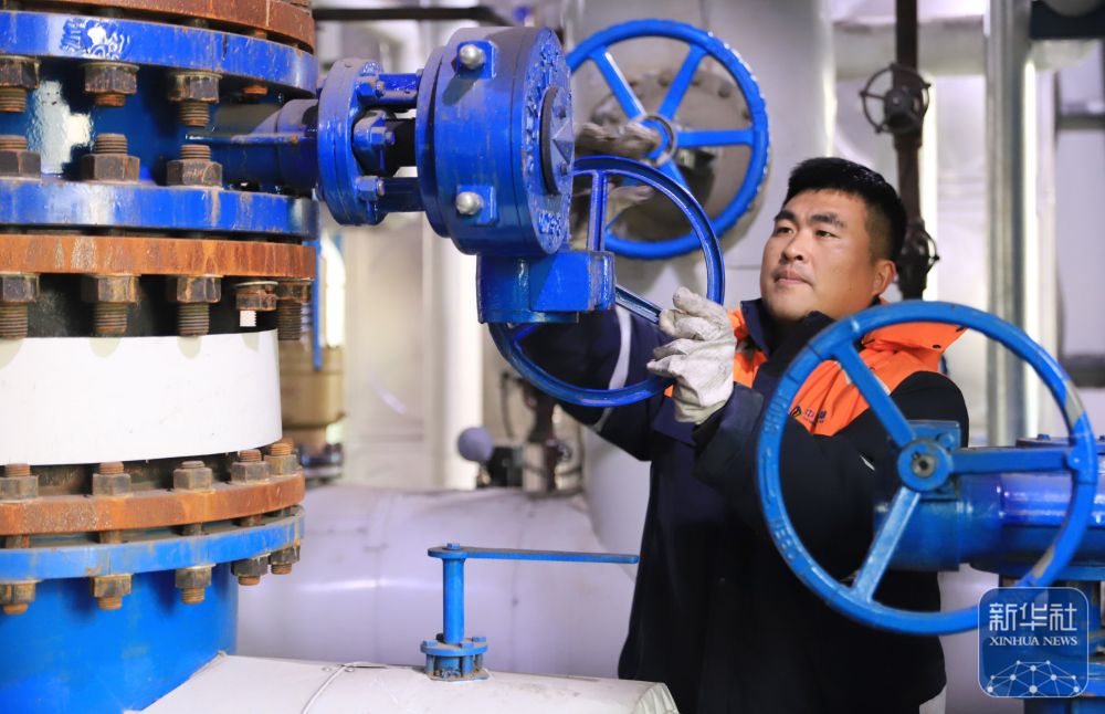 ↑ 12月10日,河南省焦作市溫縣一家熱力公司的員工在巡檢調試熱力設備。新華社發(徐宏星攝)
