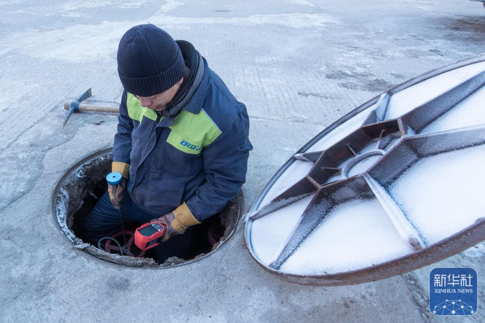 ↑ 12月11日,黑龍江省富錦市一家供熱企業的工作人員在巡護供熱網絡。新華社發(曲玉寶攝)