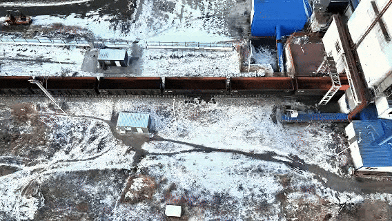 一整圈的煤炭裝車作業